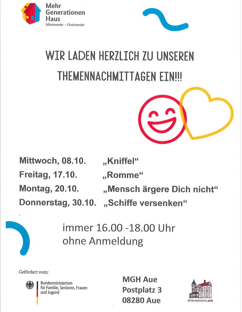 Unsere Themennachmittage Oktober