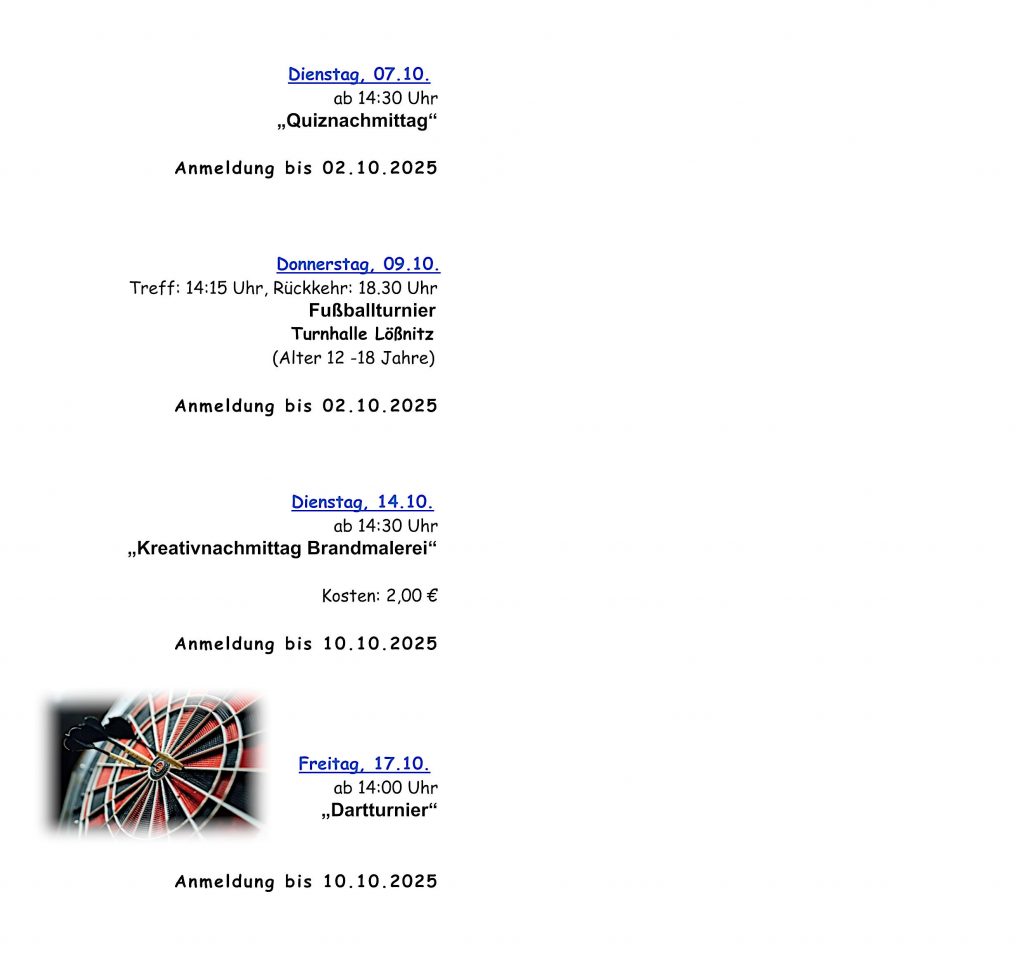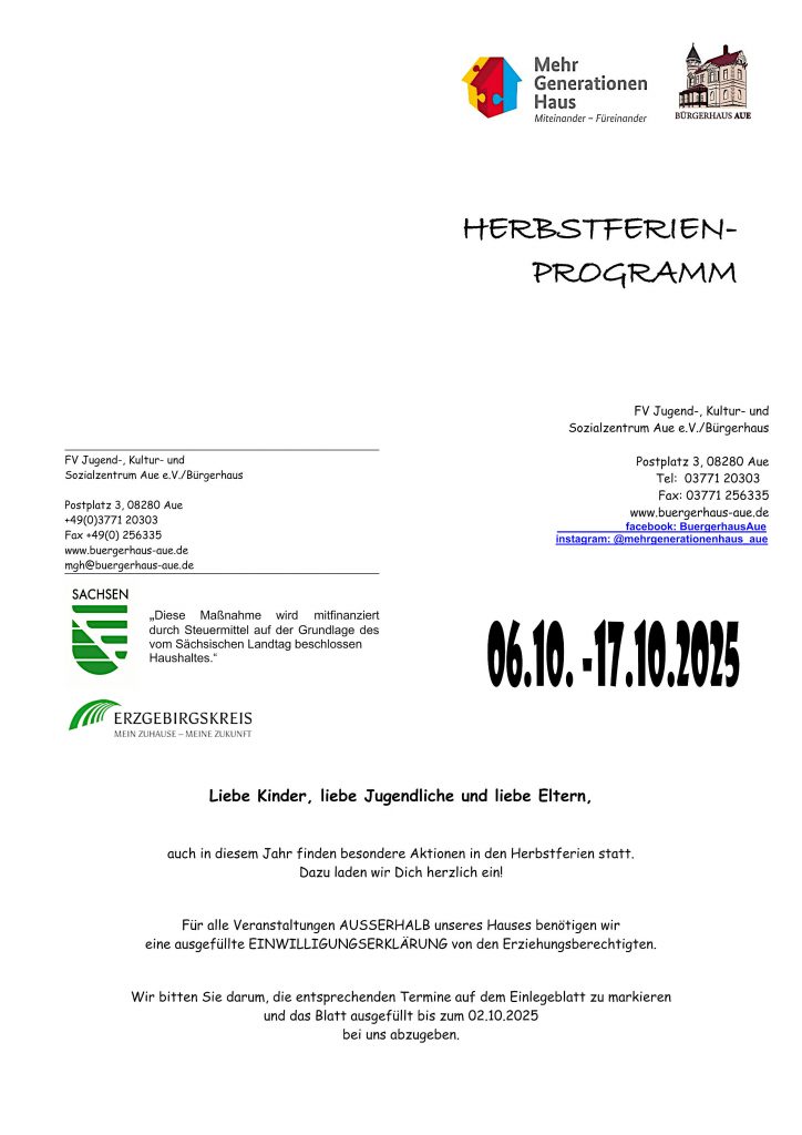 auch in diesem Jahr finden besondere Aktionen in den Herbstferien statt.